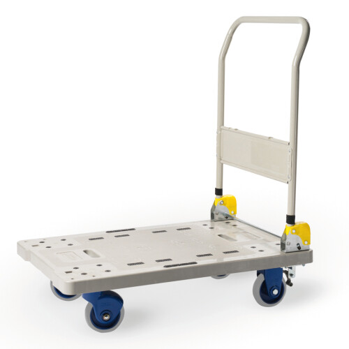Chariot plateau polypropylène à frein avec dossier rabattable grand modèle