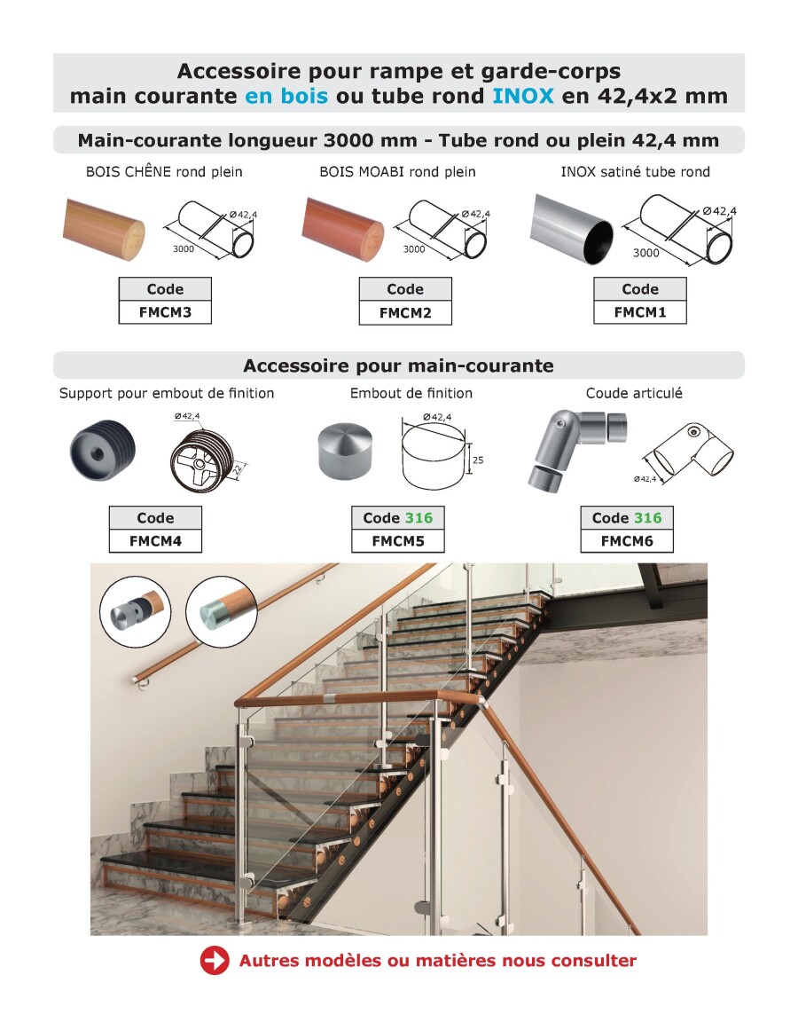 Accessoires INOX 304 et 316 pour garde-corps - Pour tubes de 42,4, pour rampes…