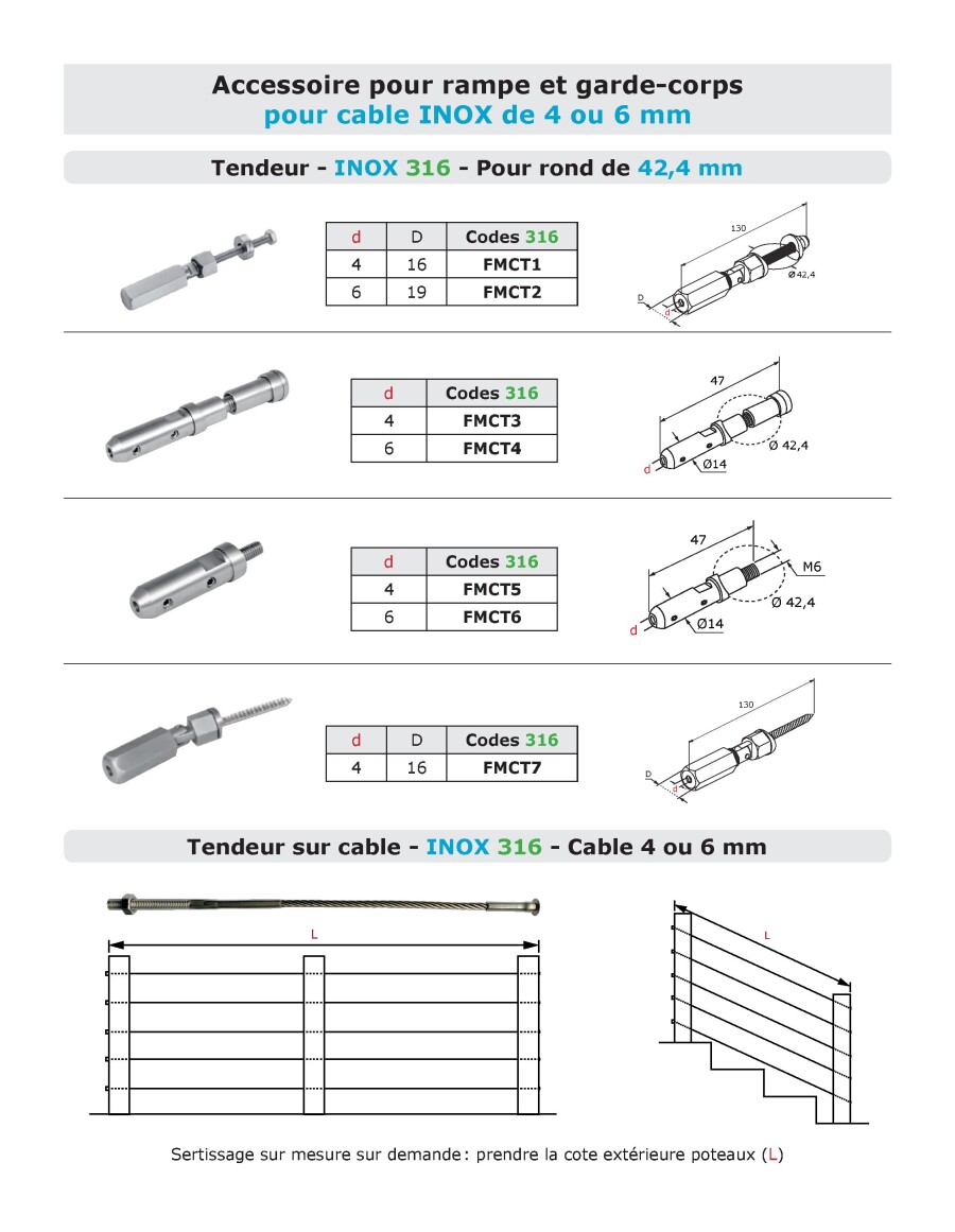 Accessoires INOX 304 et 316 pour garde-corps - Pour tubes de 42,4, pour rampes…