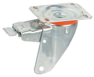 Ce blocage est intégré aux montures pivotantes série 300 à petite platine (105x85) pour roue diamètre 80 mm à 150 mm.